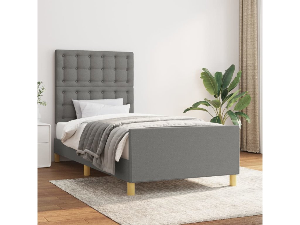 Rám postele s čelem tmavě šedý 90x190 cm textil 3125342