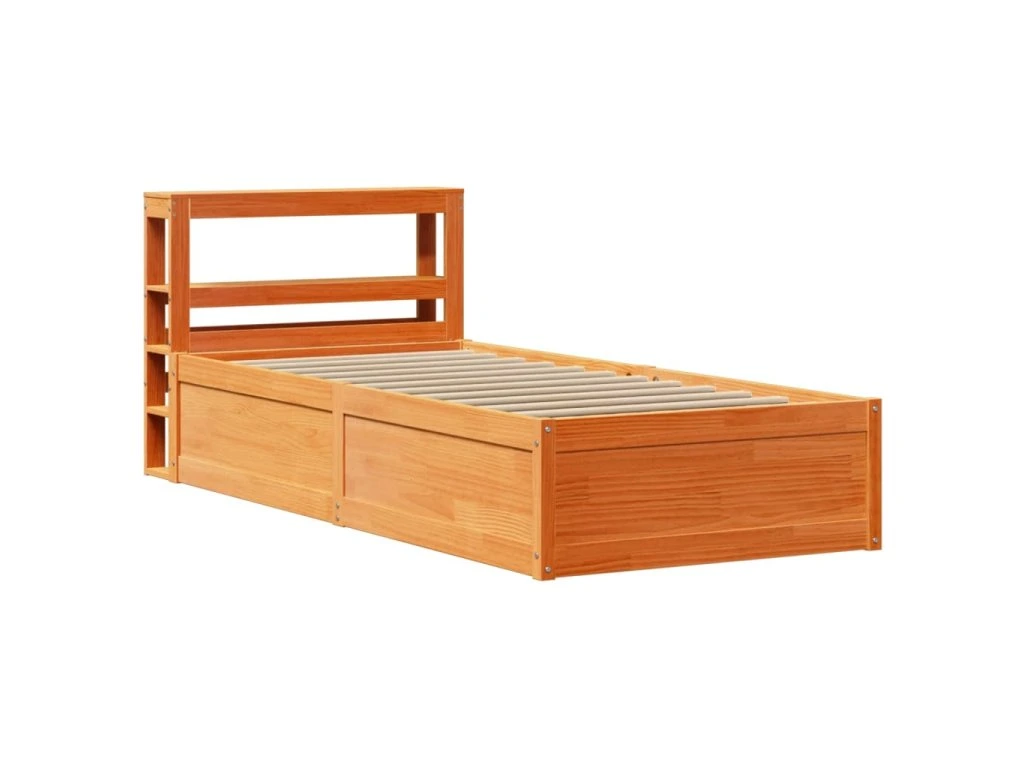 Rám postele s čelem voskově hnědý 100 x 200 cm masivní borovice 3306350