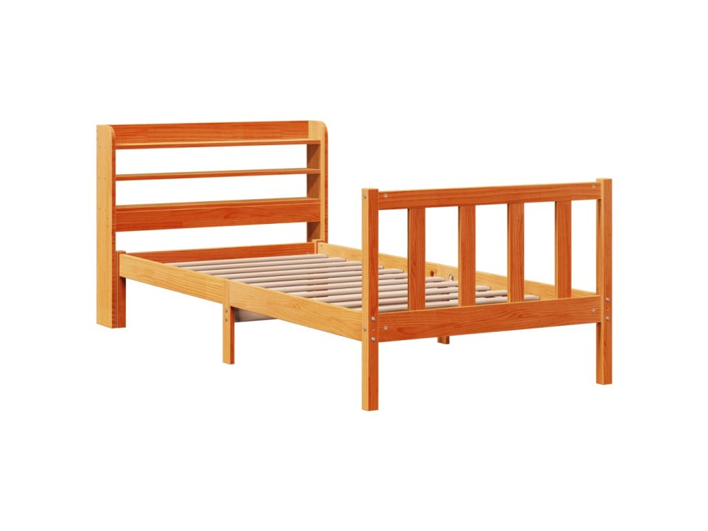 Rám postele s čelem voskově hnědý 100 x 200 cm masivní borovice 3306596