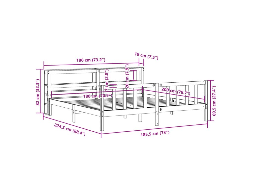 - Rozměry čela postele: 186 x 19 x 82 cm (D x Š x V)