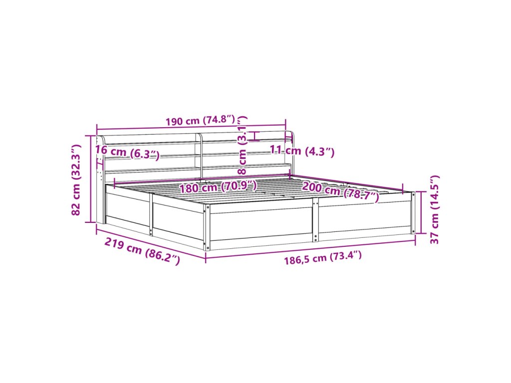 Rám postele s čelem voskově hnědý 180x200 cm masivní borovice 3307076