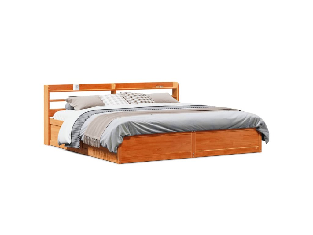 Rám postele s čelem voskově hnědý 200x200 cm masivní borovice 3307073