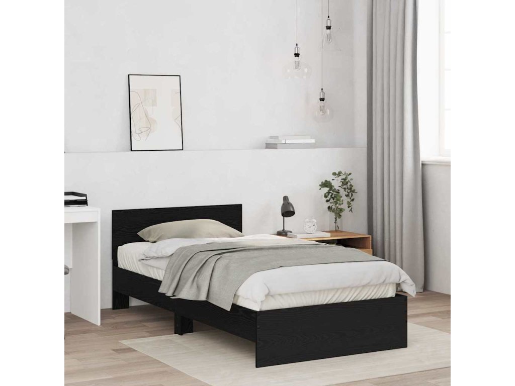 Rám postele s čelo Černý dub 203 x 104 x 70 cm kompozitní dřevo 3376052