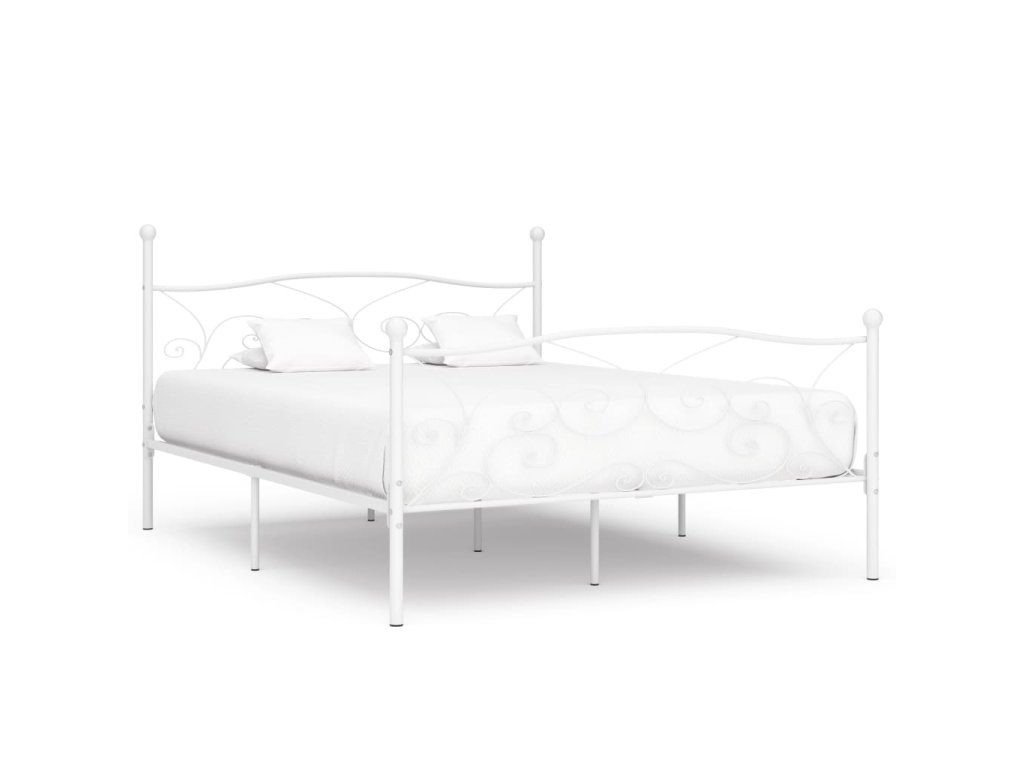 Rám postele s laťkovým roštem bílý kov 200 x 200 cm 284453