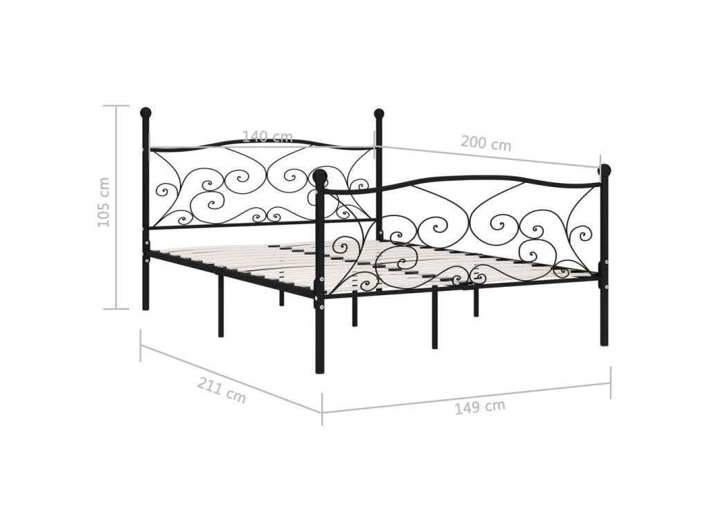 Rám postele s laťkovým roštem černý kov 140 x 200 cm 284457