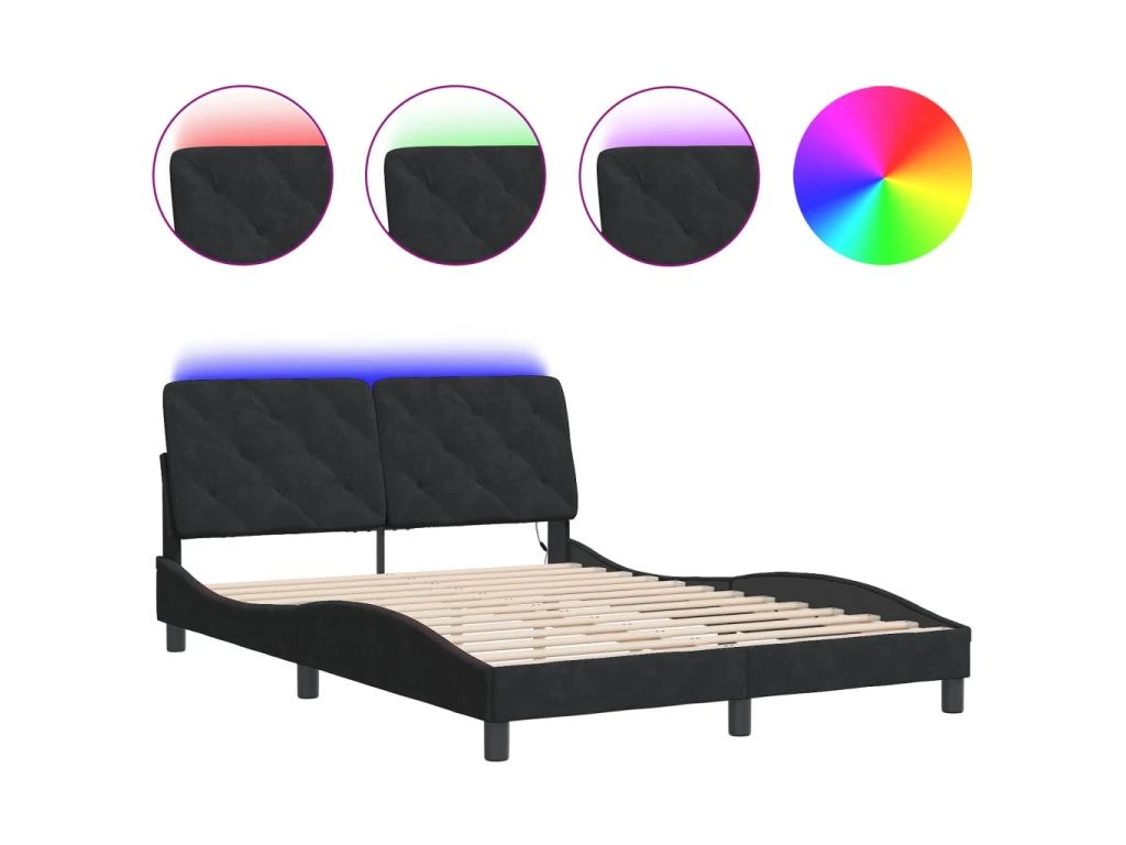 Rám postele s LED bez matrace černý 120 x 200 cm samet 3213845