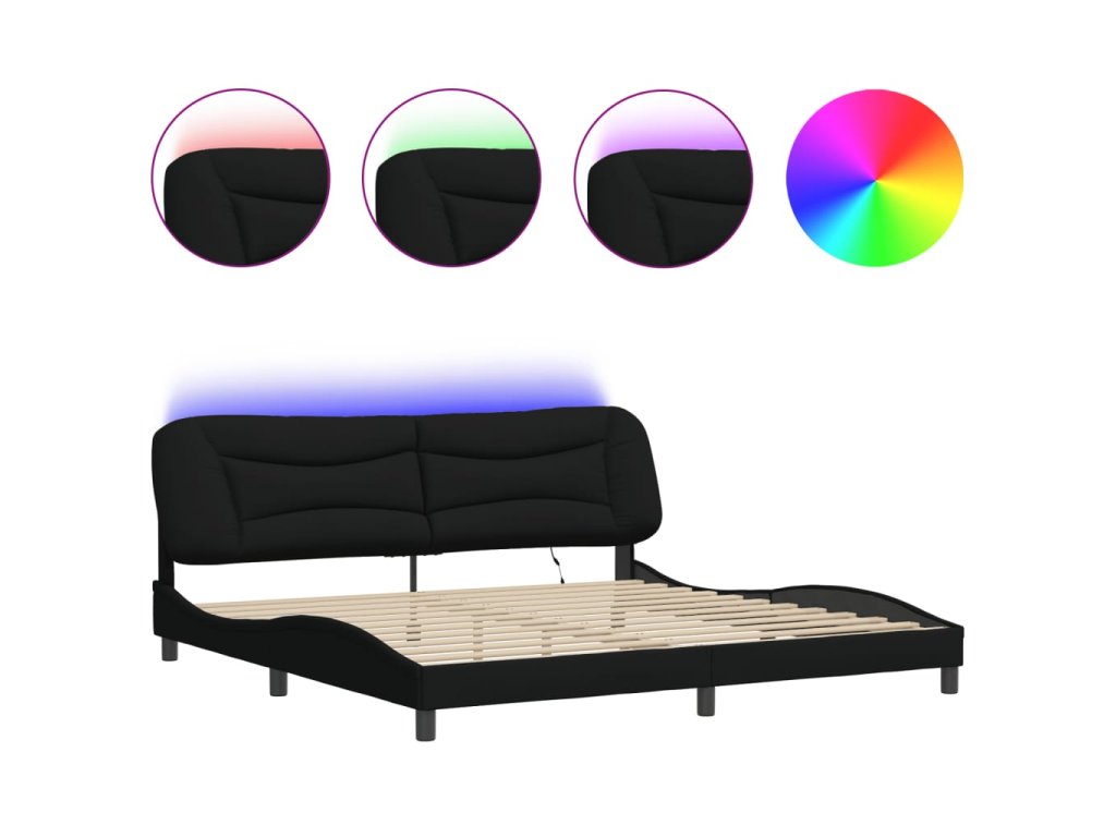 Rám postele s LED bez matrace Hvar černý 200x200 cm Látka 3213727