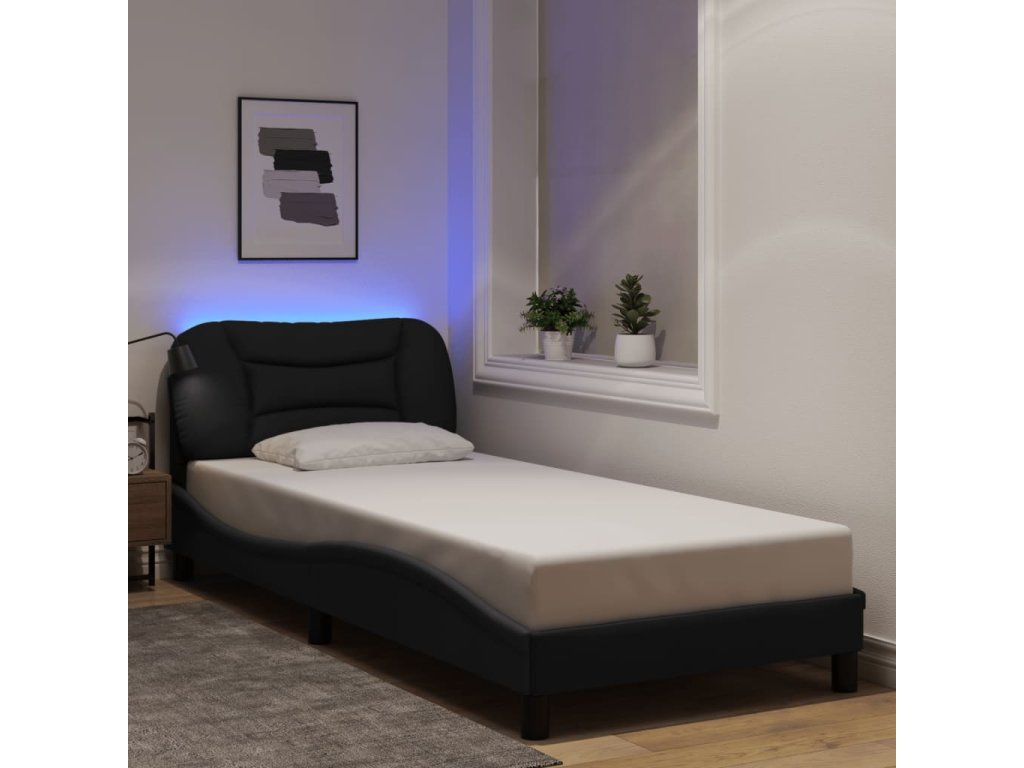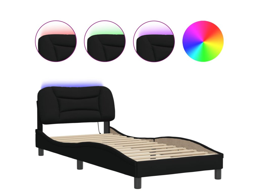 Rám postele s LED bez matrace Hvar černý 80x200 cm Látka 3213664