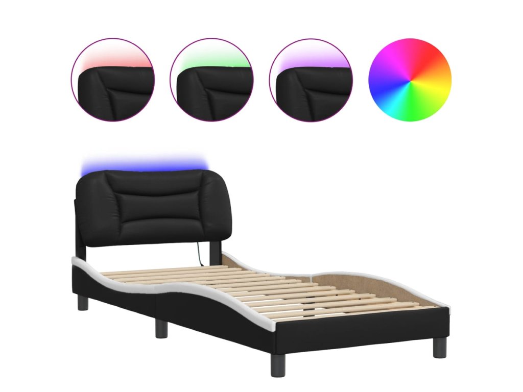 Rám postele s LED bez matrace Hvar černý a bílý 90x200 cm 3213911