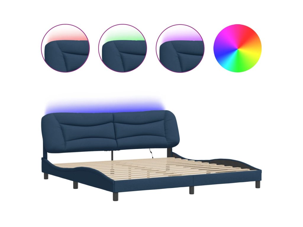 Rám postele s LED bez matrace Hvar Modrá 200x200 cm Látka 3213731