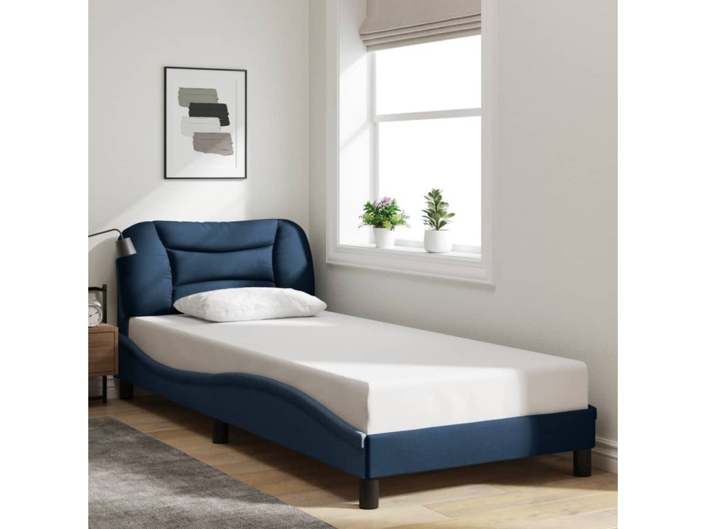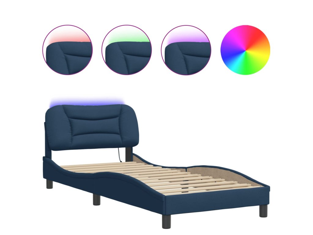 Rám postele s LED bez matrace Hvar Modrá 90x200 cm Látka 3213682
