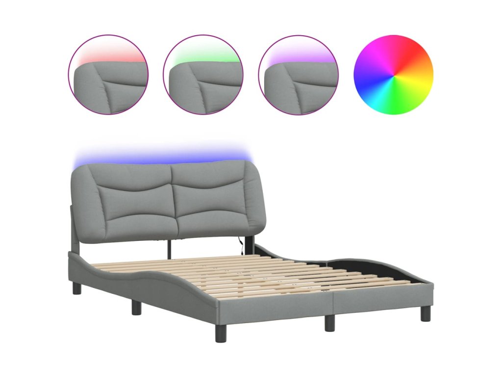 Rám postele s LED bez matrace Hvar Světle šedá 140x190 cm Látka 3213697