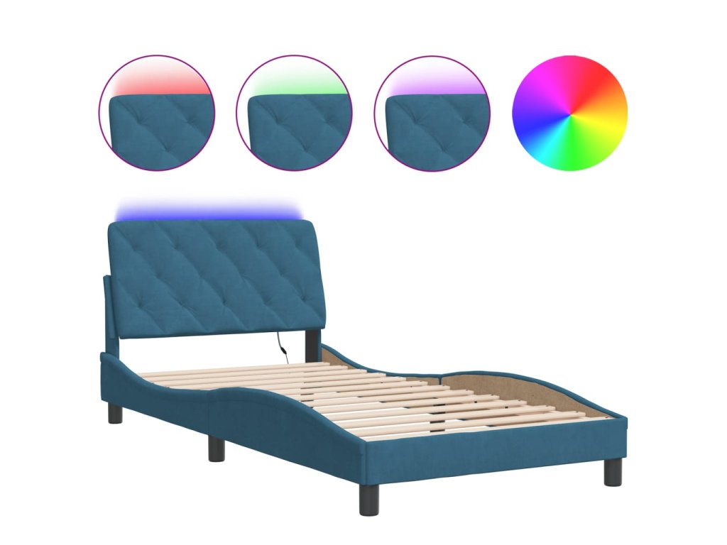 Rám postele s LED bez matrace modrý 100 x 200 cm samet 3213841
