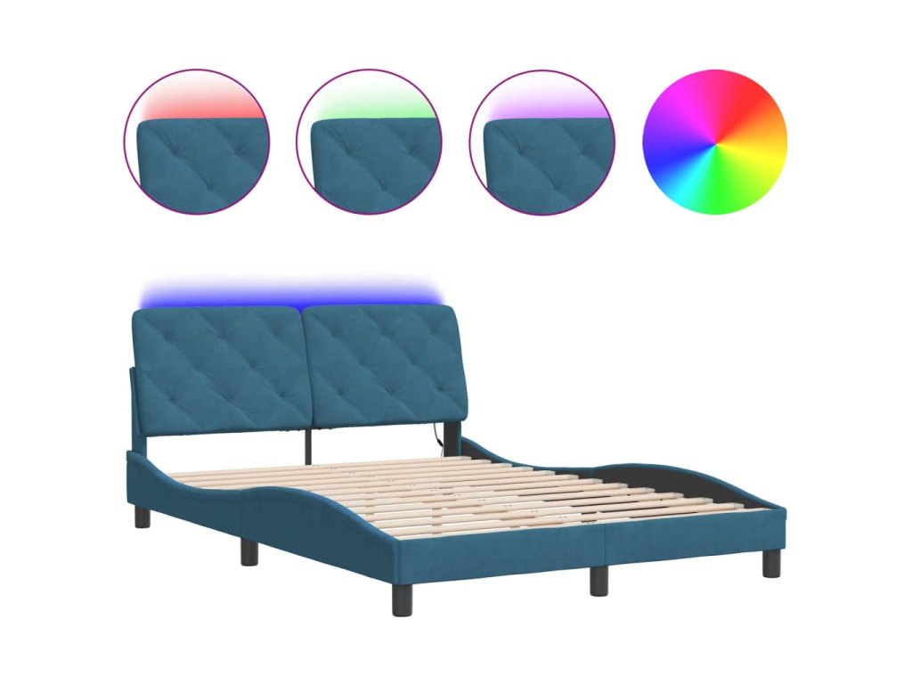 Rám postele s LED bez matrace modrý 140 x 200 cm samet 3213859