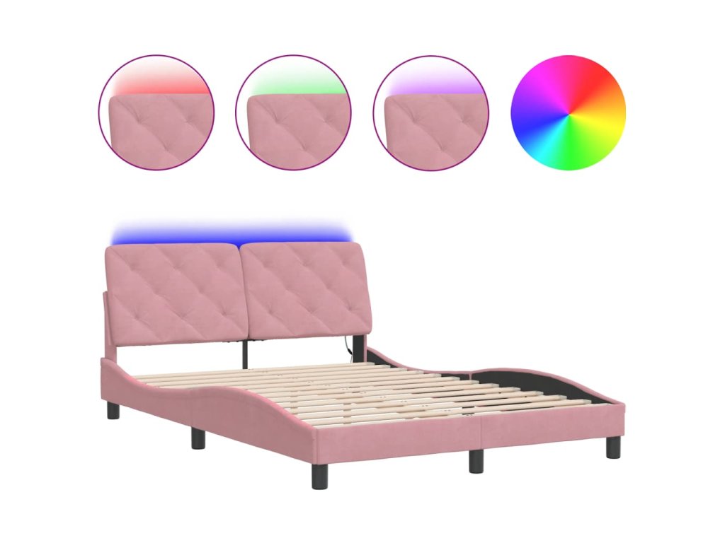 Rám postele s LED bez matrace růžový 120 x 200 cm samet 3213848