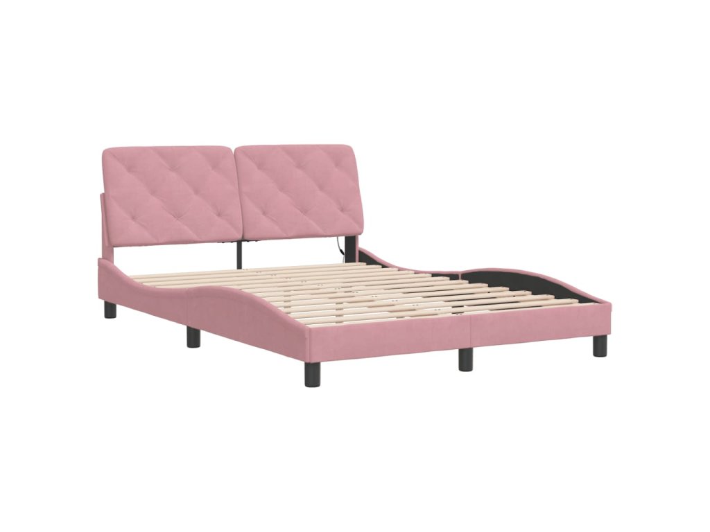 Rám postele s LED bez matrace růžový 140 x 200 cm samet 3213860