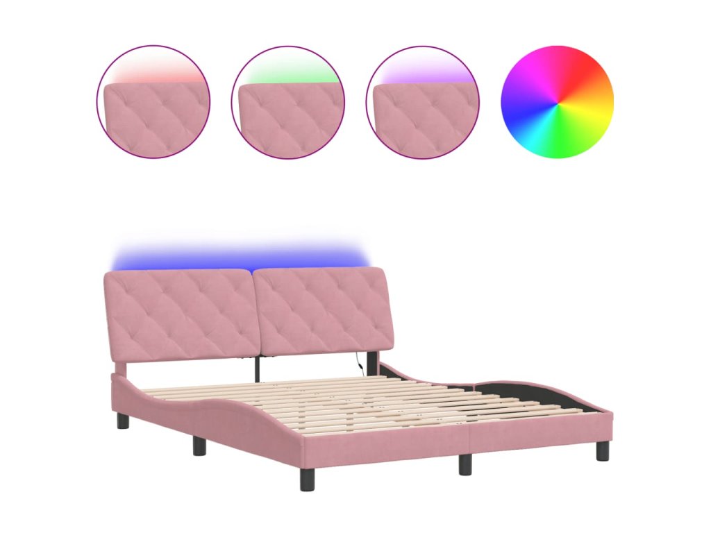 Rám postele s LED bez matrace růžový 160 x 200 cm samet 3213866