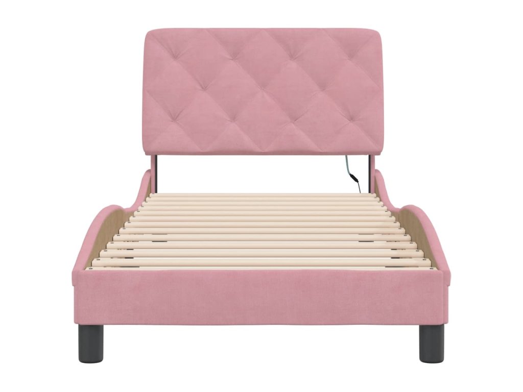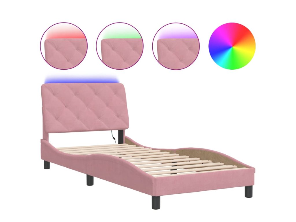 Rám postele s LED bez matrace růžový 90 x 190 cm samet 3213830