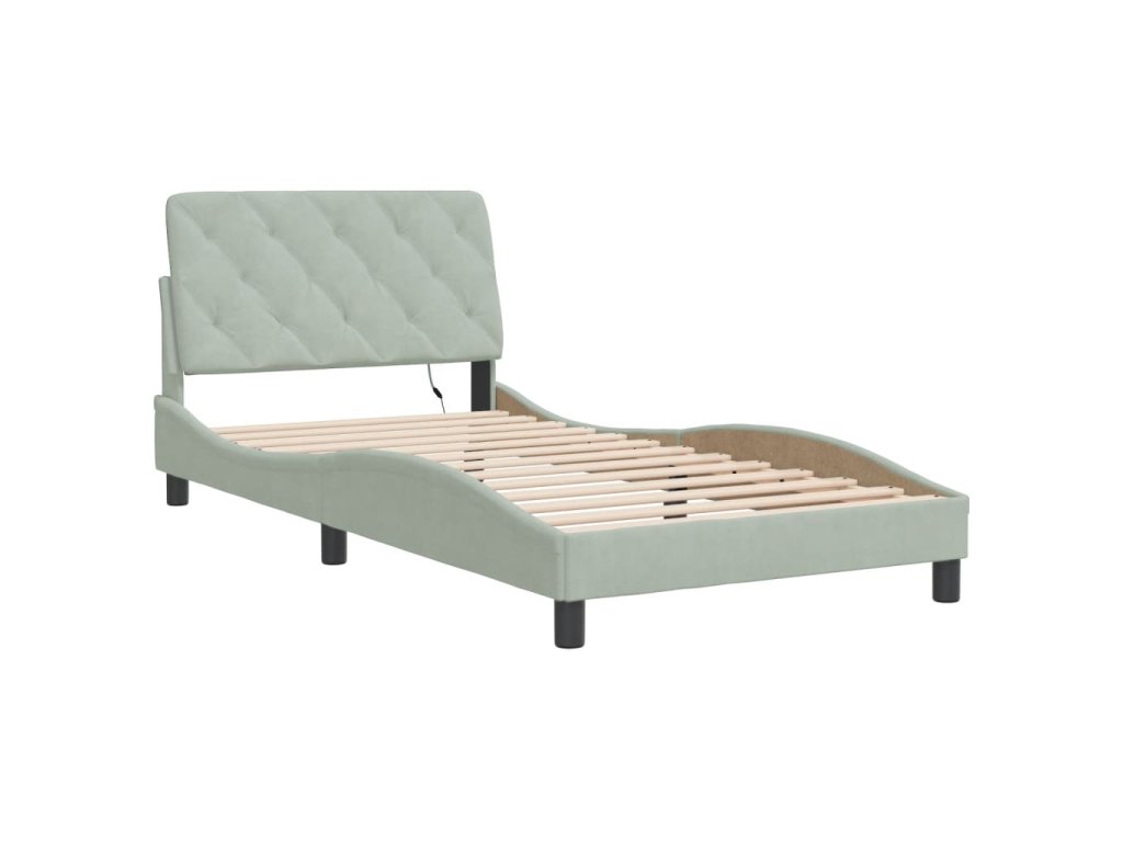 Rám postele s LED bez matrace světle šedý 100 x 200 cm samet 3213837