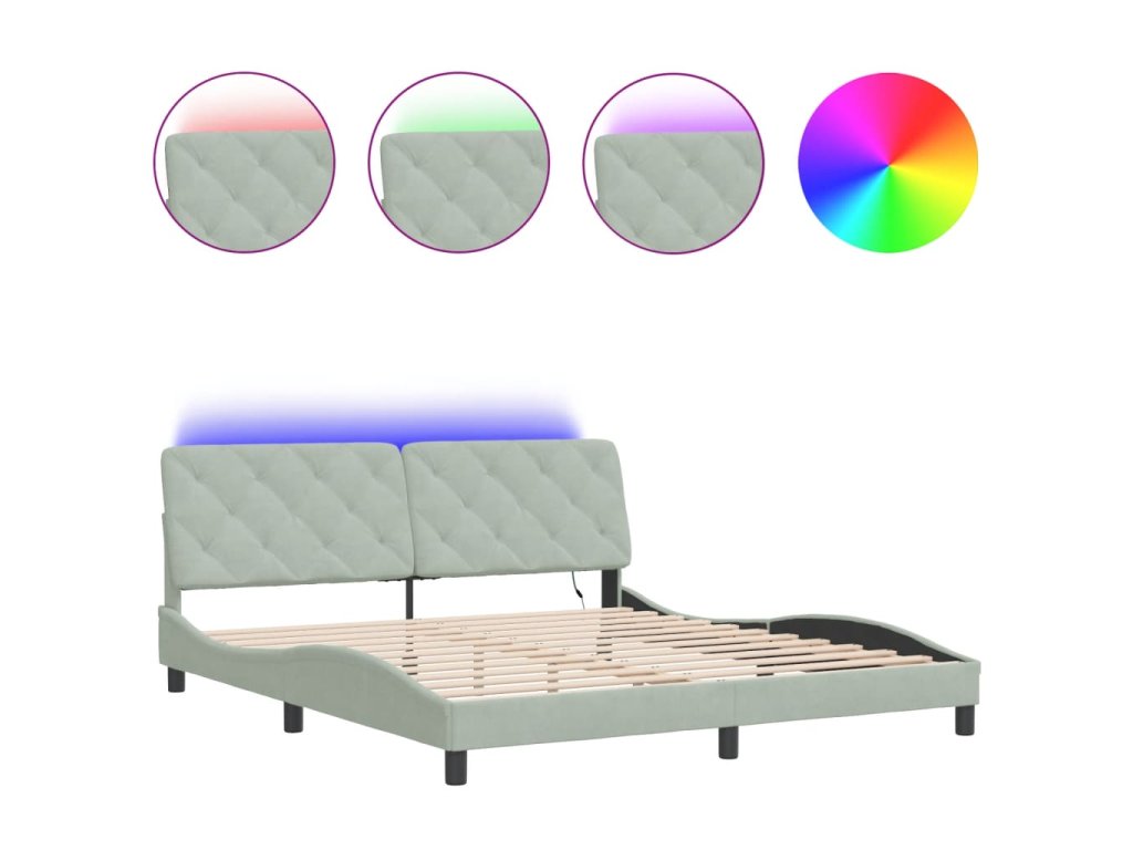Rám postele s LED bez matrace světle šedý 180 x 200 cm samet 3213867