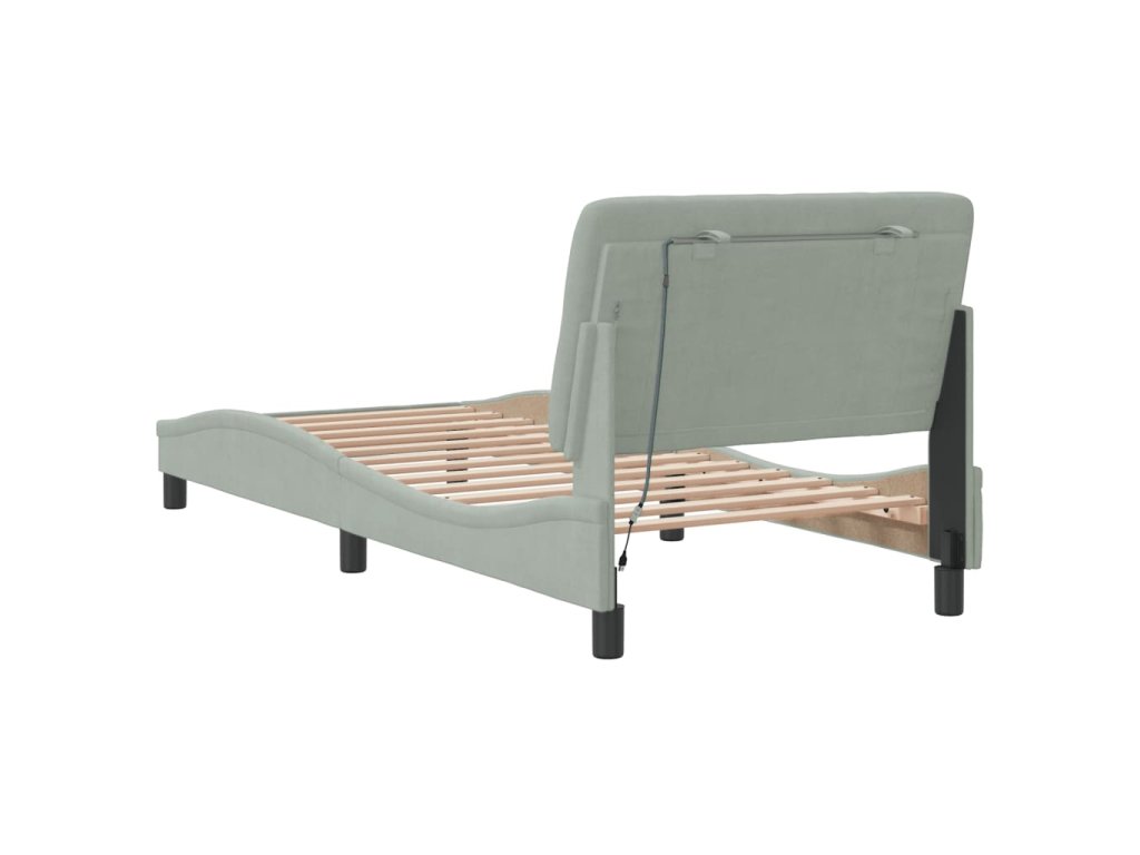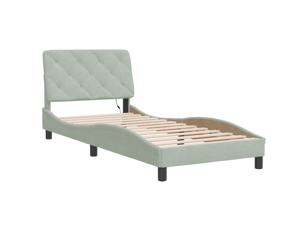 Rám postele s LED bez matrace světle šedý 90 x 200 cm samet 3213831