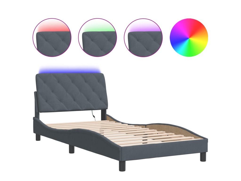 Rám postele s LED bez matrace tmavě šedý 100 x 200 cm samet 3213838