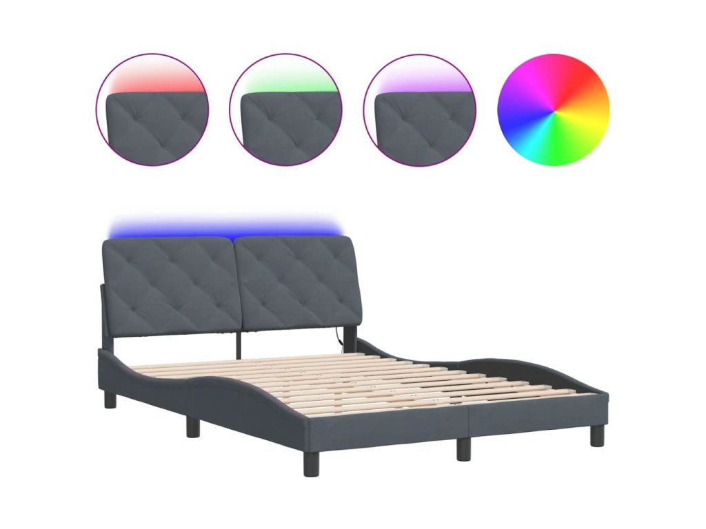 Rám postele s LED bez matrace tmavě šedý 140 x 200 cm samet 3213856