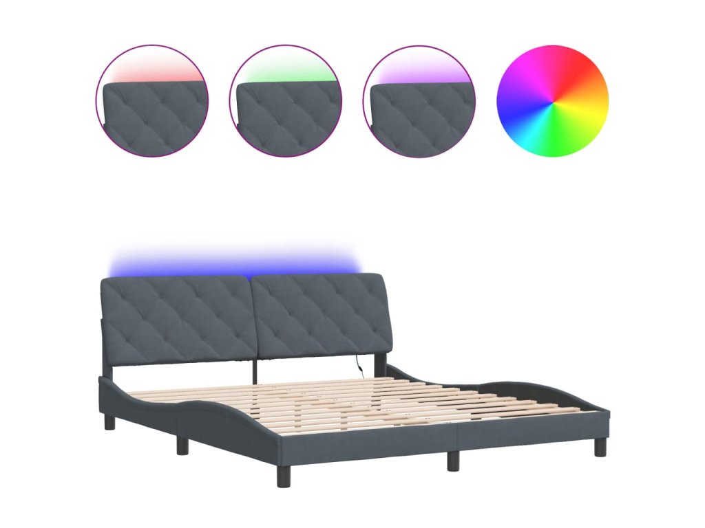 Rám postele s LED bez matrace tmavě šedý 180 x 200 cm samet 3213868