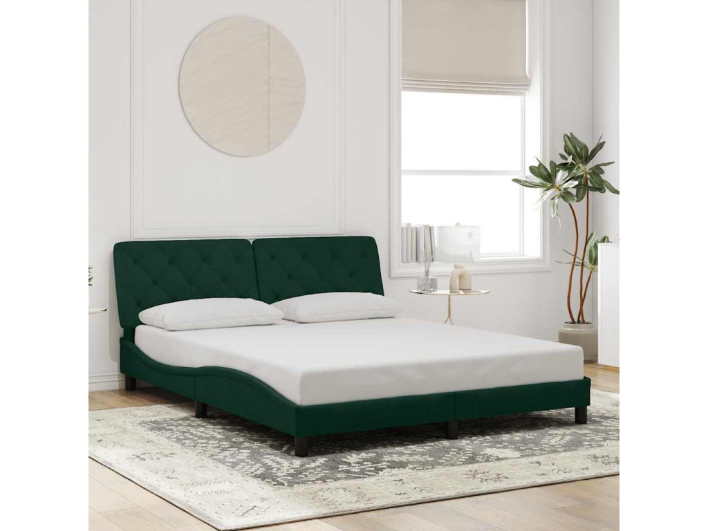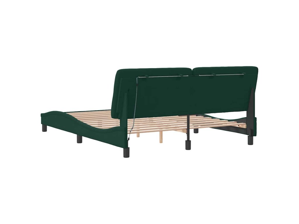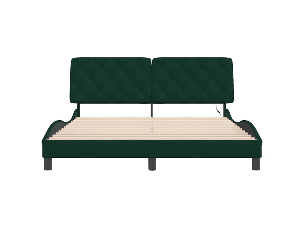 Rám postele s LED bez matrace tmavě zelený 160 x 200 cm samet 3213864