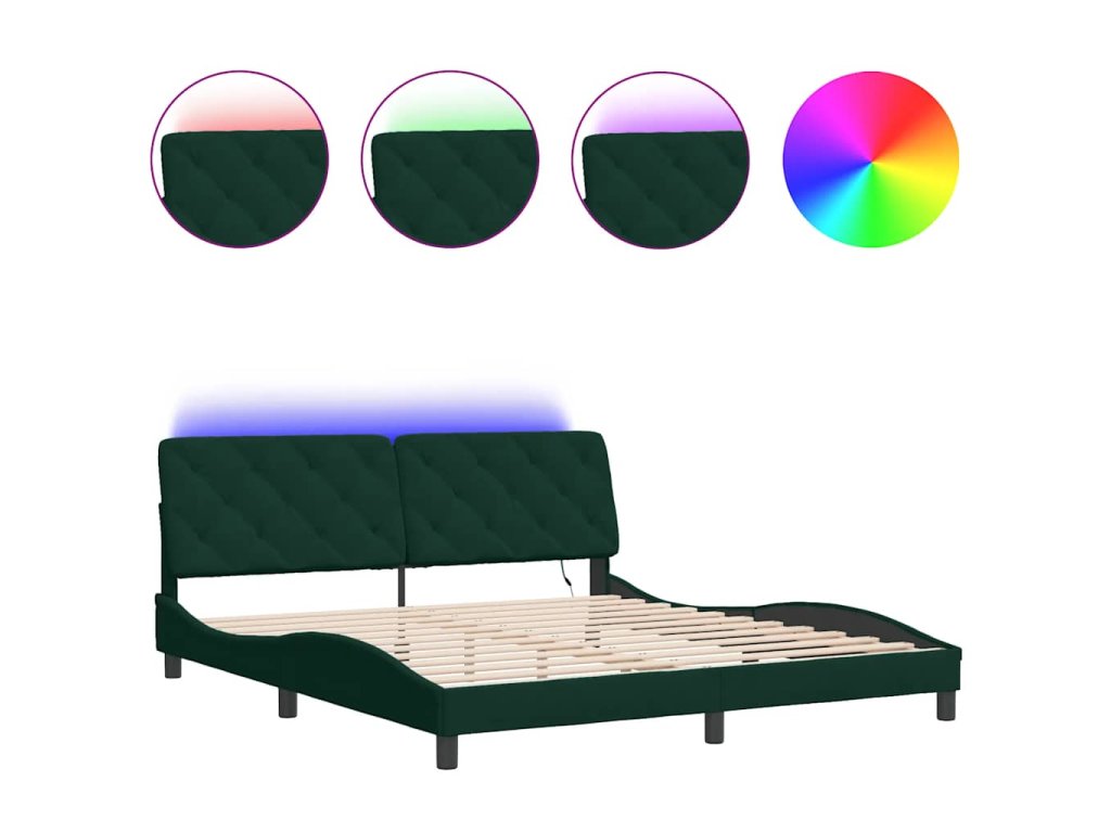 Rám postele s LED bez matrace tmavě zelený 180 x 200 cm samet 3213870