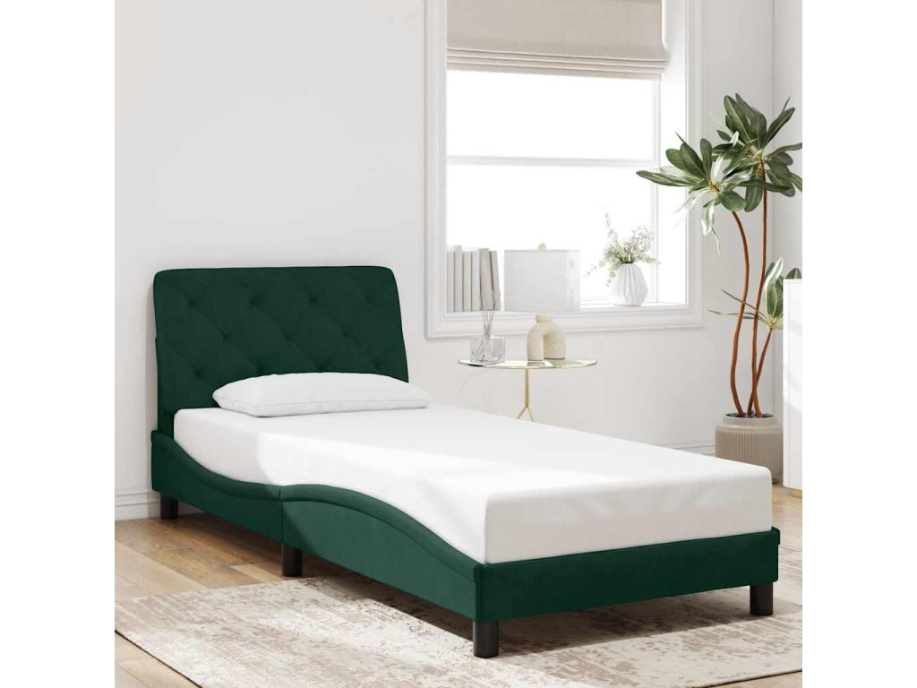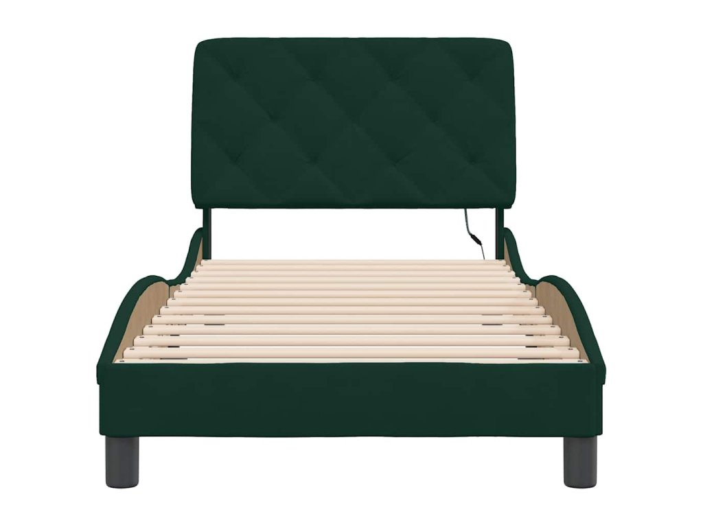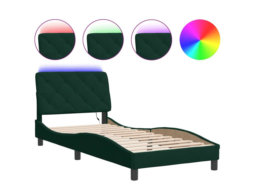 Rám postele s LED bez matrace tmavě zelený 90 x 200 cm samet 3213834