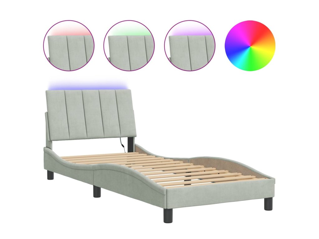 Rám postele s LED osvětlením bez matrace Hanko světle šedý 90 x 200 cm samet 3213757