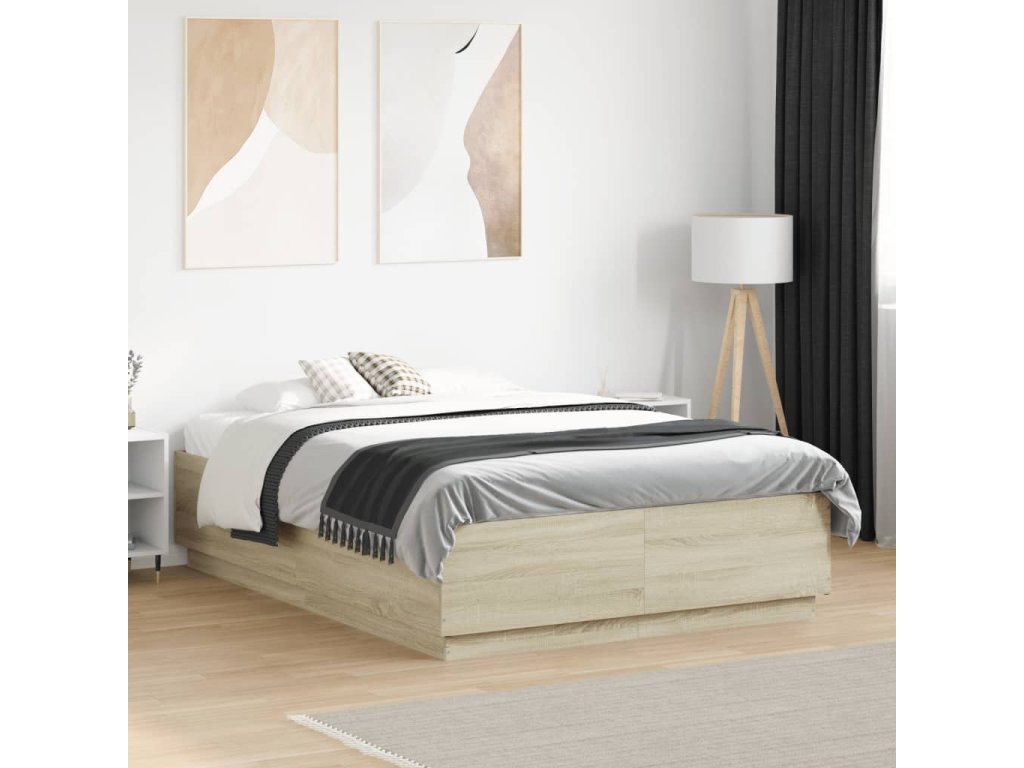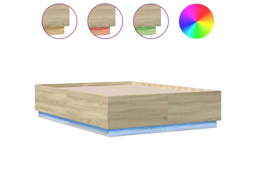 Rám postele s LED osvětlením dub sonoma 135 x 190 cm kompozit 3209648
