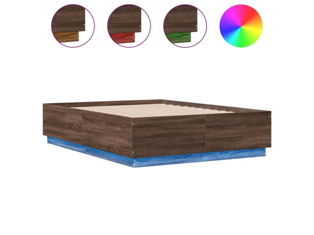 Rám postele s LED osvětlením hnědý dub 135 x 190 cm kompozit 3209652