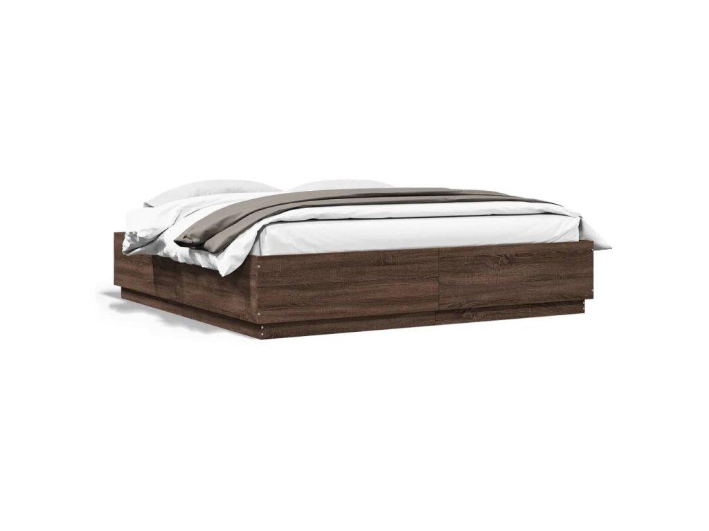Rám postele s LED osvětlením hnědý dub 200 x 200 cm kompozit 3209589