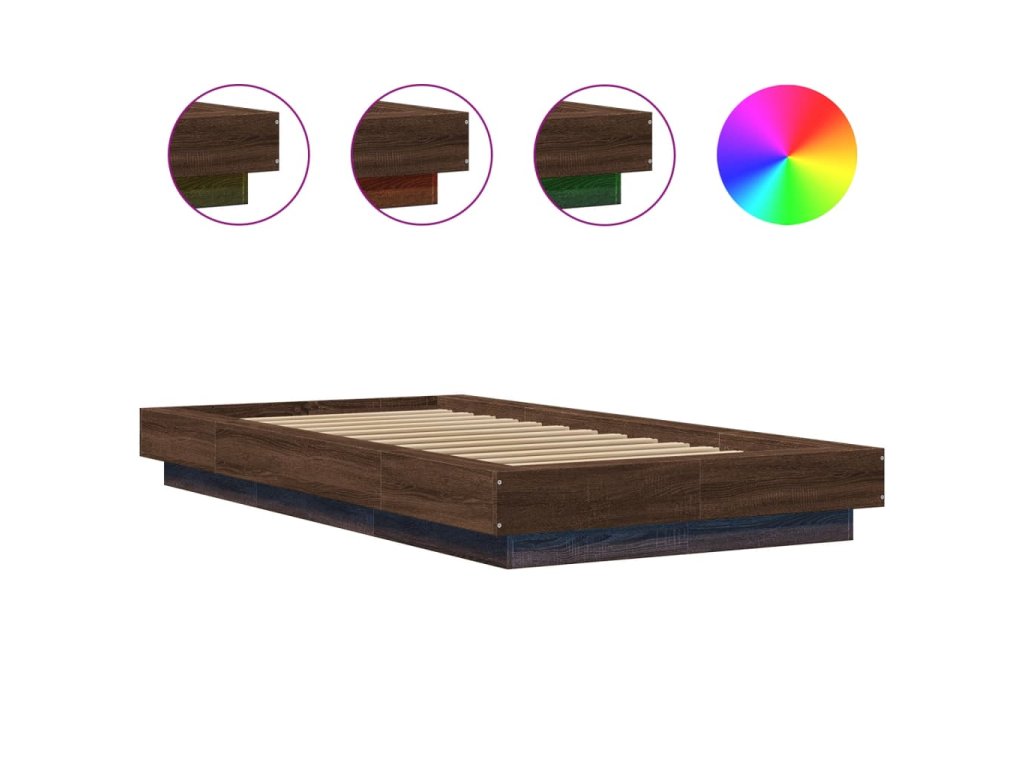 Rám postele s LED osvětlením hnědý dub 90 x 200 cm kompozit 3281125