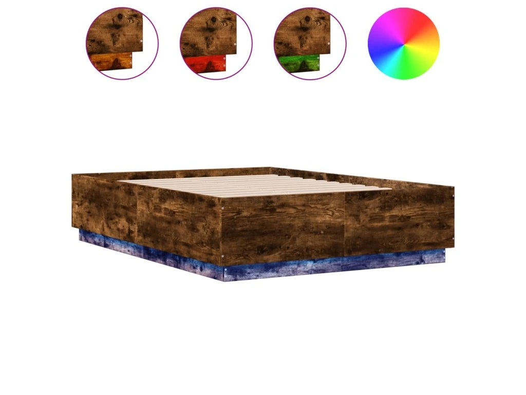 Rám postele s LED osvětlením kouřový dub 135 x 190 cm kompozit 3209650