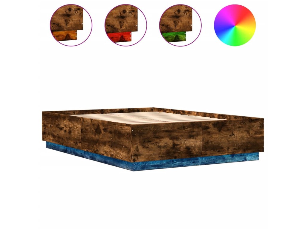 Rám postele s LED osvětlením kouřový dub 140 x 200 cm kompozit 3209615