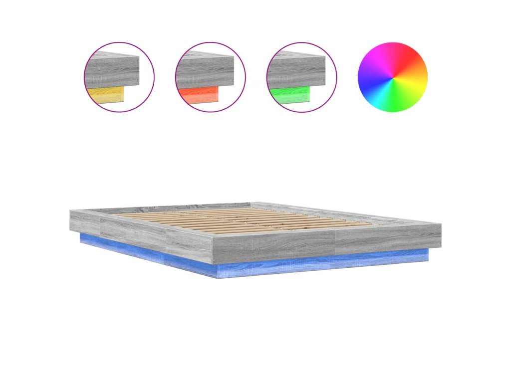 Rám postele s LED osvětlením šedý sonoma 140 x 190 cm kompozit 3281131