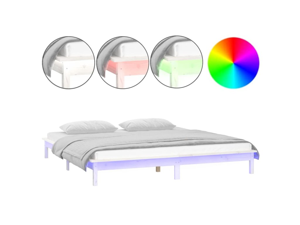Rám postele s LED světlem bílý 120 x 200 cm masivní dřevo 820602