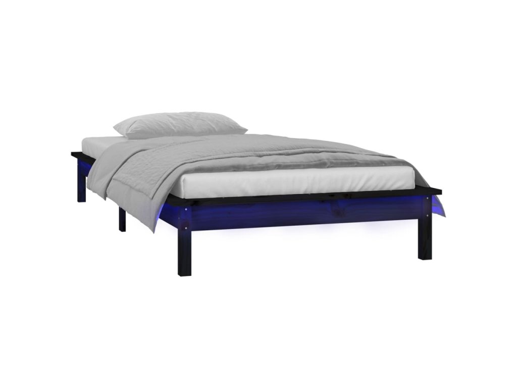 Rám postele s LED světlem černý 90 x 200 cm masivní dřevo 820595