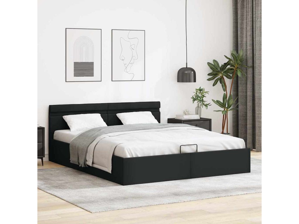 Rám postele s LED úložný prostor černý umělá kůže 180 x 200 cm 285545