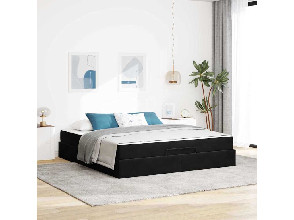 Rám postele s matrací s matrací 2 pcs Černá samet 3399578