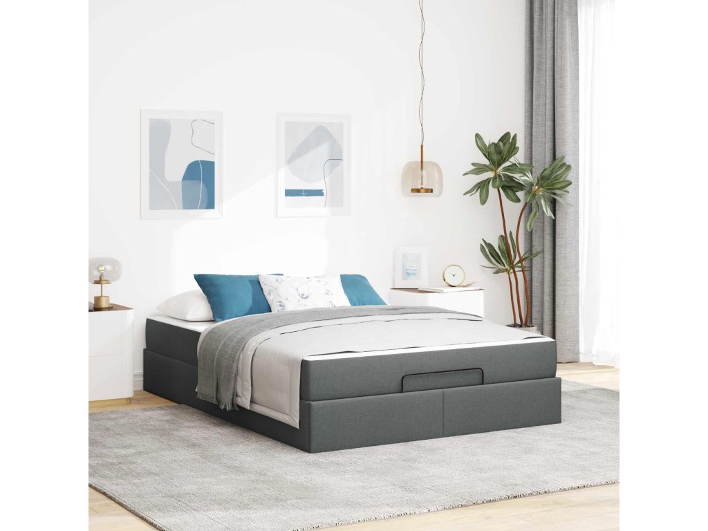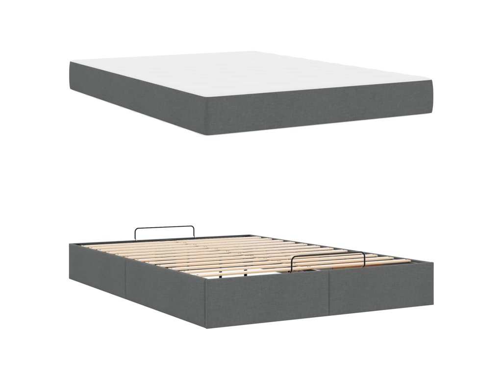 Rám postele s matrací s matrací 2 pcs Tmavě Šedá textil 3399495