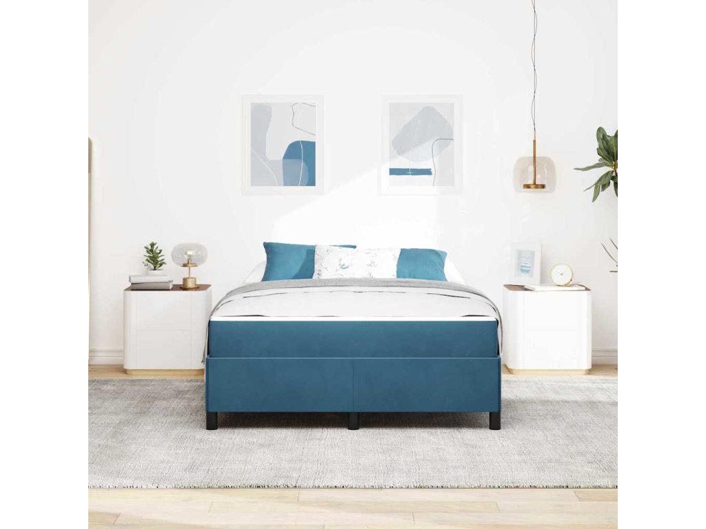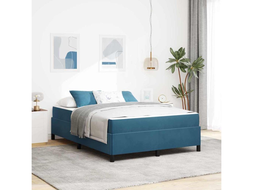 Rám postele s matrací Tmavě modrá 140 x 190 cm textil 3399064