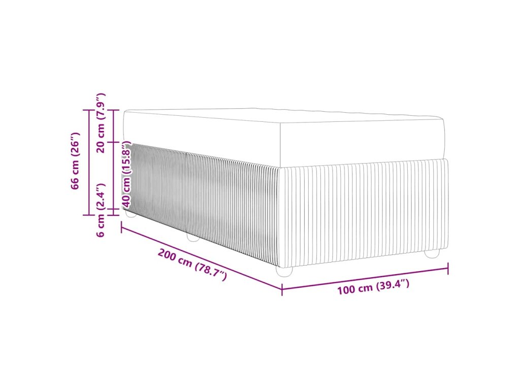 - Velikost matrace: Široké jednolůžko (100 cm x 200 cm nebo 39" x 79")