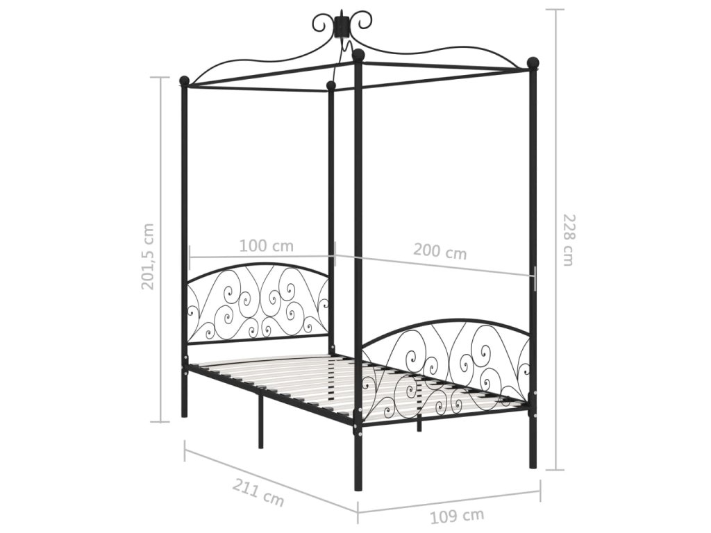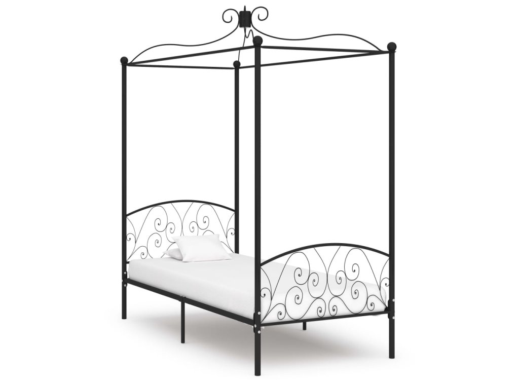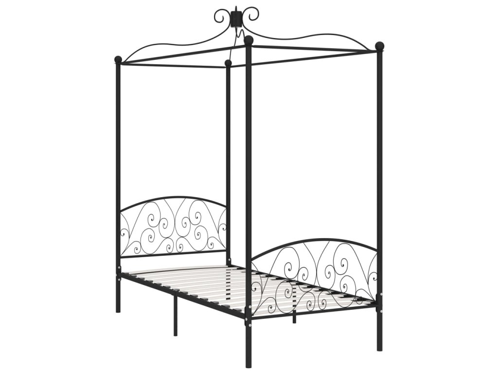 Rám postele s nebesy černý kovový 100 x 200 cm 284475