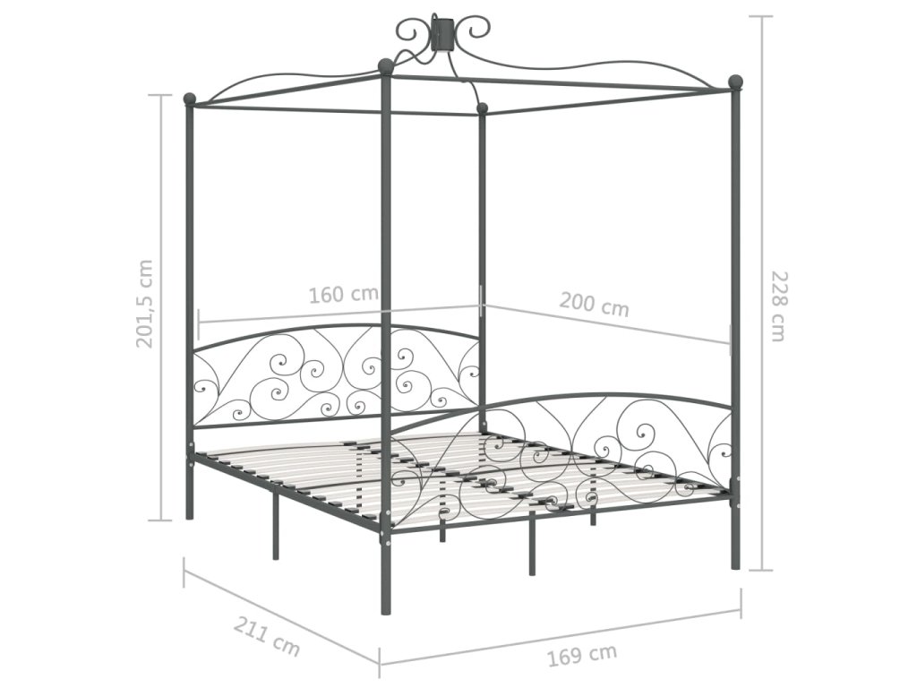 Rám postele s nebesy šedý kovový 160 x 200 cm 284484