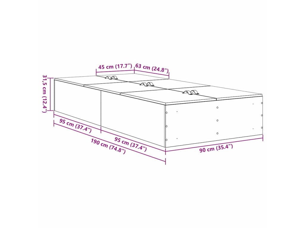 - Celkové rozměry: 190 x 90 x 31,5 cm (D x Š x V)