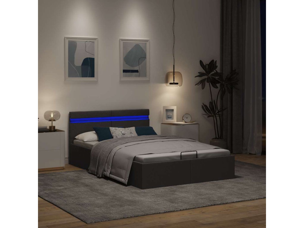 Rám postele s úložným prostorem LED tmavě šedý textil 140x200cm 285603